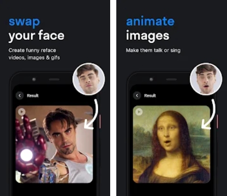 Reface is one of the best choices for over 10 million users across the globe. You can easily switch your face with a celebrity or a pop star in seconds with the app. Also, the other features of this app let you play with live face swaps and gender swaps. You can make realistic face swap videos and GIFs with your selfies and with the help of Reface app.